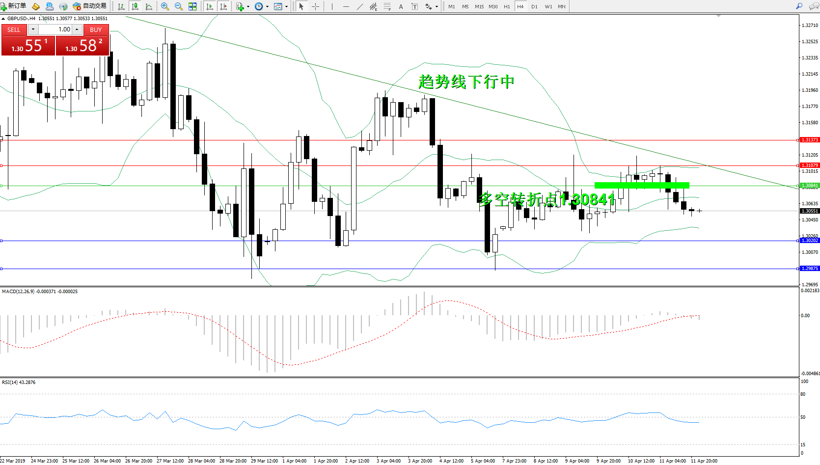 交易策略:1.30841下方看跌,目标1.30202、1.29875