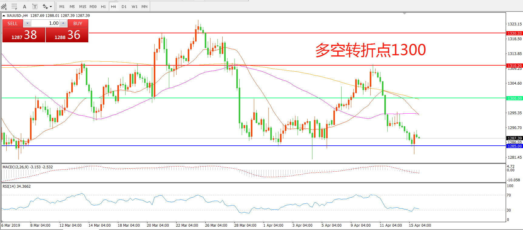 交易策略:在1300.00之下看跌,目标1285.00   1270.00