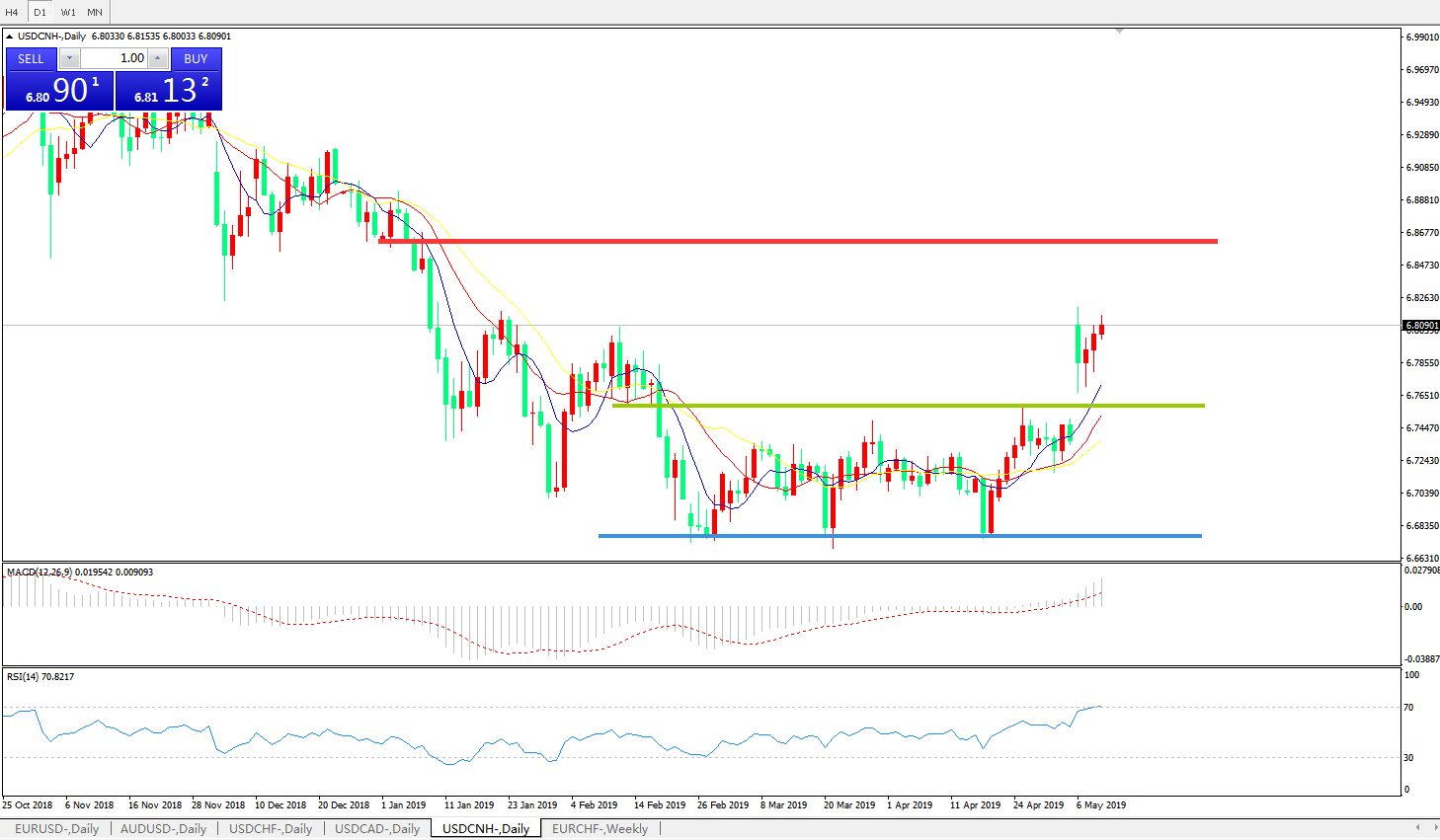 技术面简析:日线均线呈有序多头排列看多,MACD上穿0轴且动能柱0轴上方快速放量RSI急速走升,汇价企稳多空转折区域维持良好攻势,预计短期汇价或存在整理可能,中期不排除有进一步上行空间,重点关注中美贸易谈判最新进展及特朗普推特更新情况