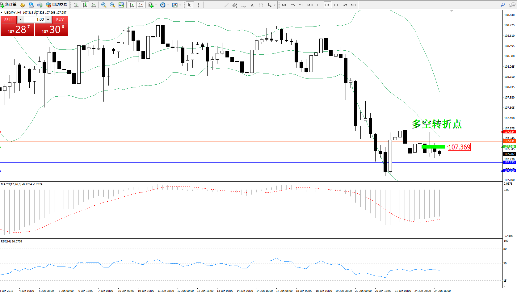 交易策略:107.369下方看跌,目标107.193、107.100