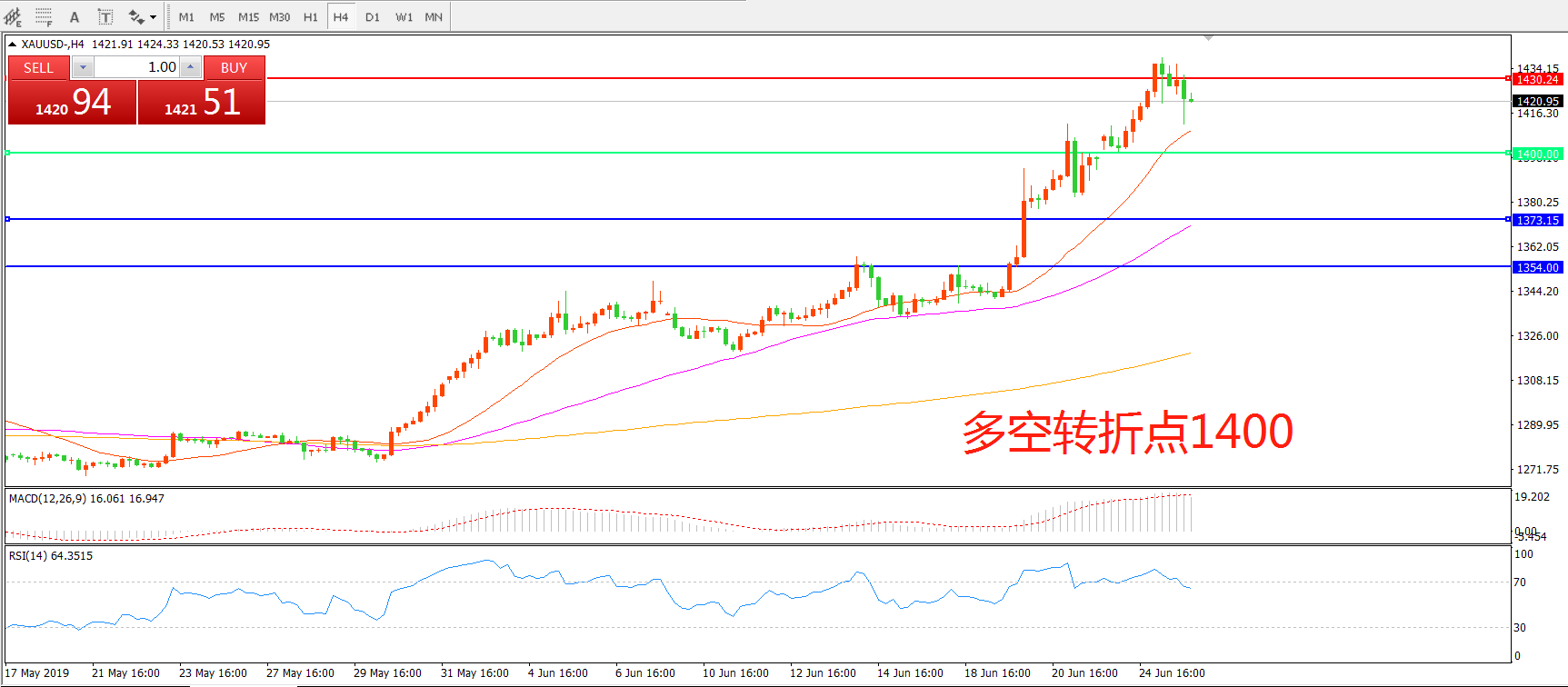 交易策略:在1400.00之上看涨,目标1430.00   1490.00