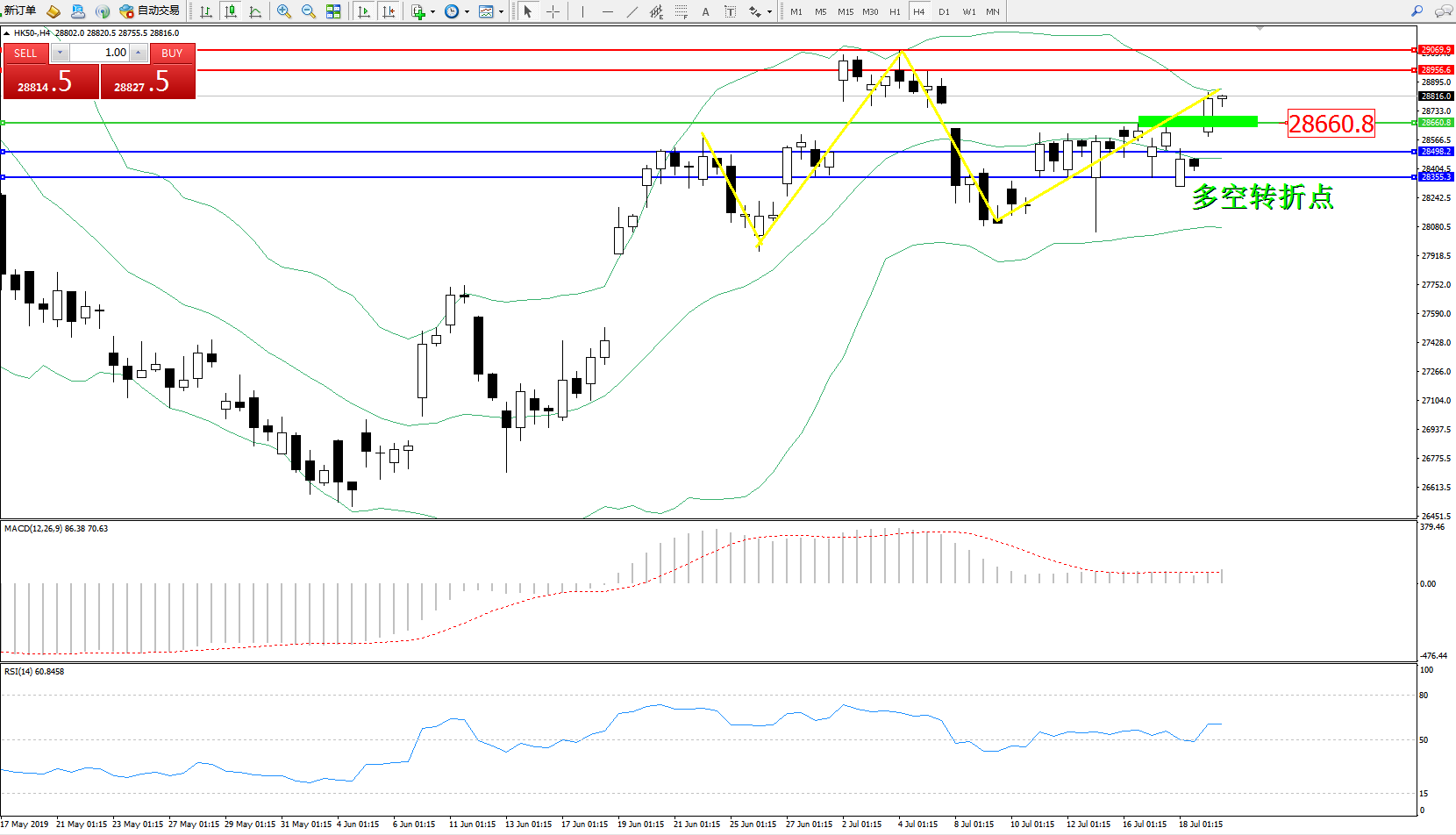 香港恒生指数7月19日(周五)收盘上涨303.74点,涨幅1.07%,报28765.40点;延续近日震荡反弹的格局,恒指高开高走,整体走势再次转强,下周一国内科创板即将登场,市场各方均翘首期待市场给予科创板怎样的估值与定位。主板市场近期持续缩量小幅整理,主要目的还是要等待市场给出科创板较为合理的定价之后再考虑进一步的投资事宜。