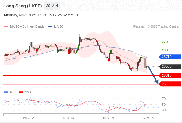 交易策略: 在 26710 之下,看跌,目标价位为 26310 ,然后为 26130 。