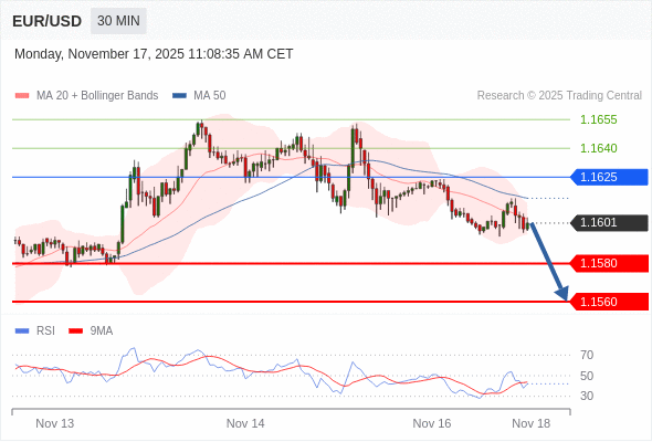 交易策略: 在 1.1625 之下,看跌,目标价位为 1.1580 ,然后为 1.1560 。