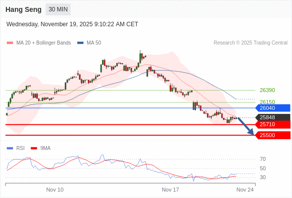 恒生指数 当日内: 朝25500运行。