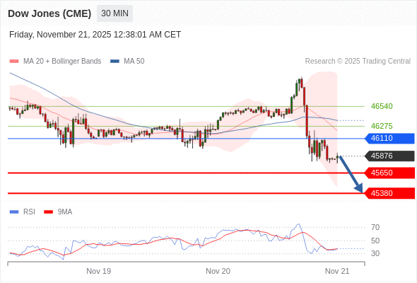 在 46110 之下,看跌,目标价位为 45650 ,然后为 45380 。