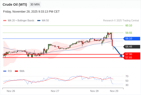 交易策略: 在 59.10 之下,看跌,目标价位为 57.90 ,然后为 57.65 。
