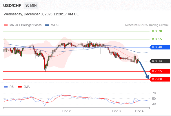 在 0.8040 之下,看跌,目标价位为 0.7995 ,然后为 0.7980 。
