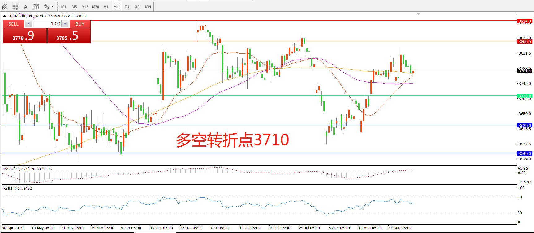 4小时图看,沪深维持高位震荡,3866.5一线形成上方阻力,21周期均线系统走平,形成下方支撑,MACD红柱增加,RSI指标向上,日内延续上行概率较大。