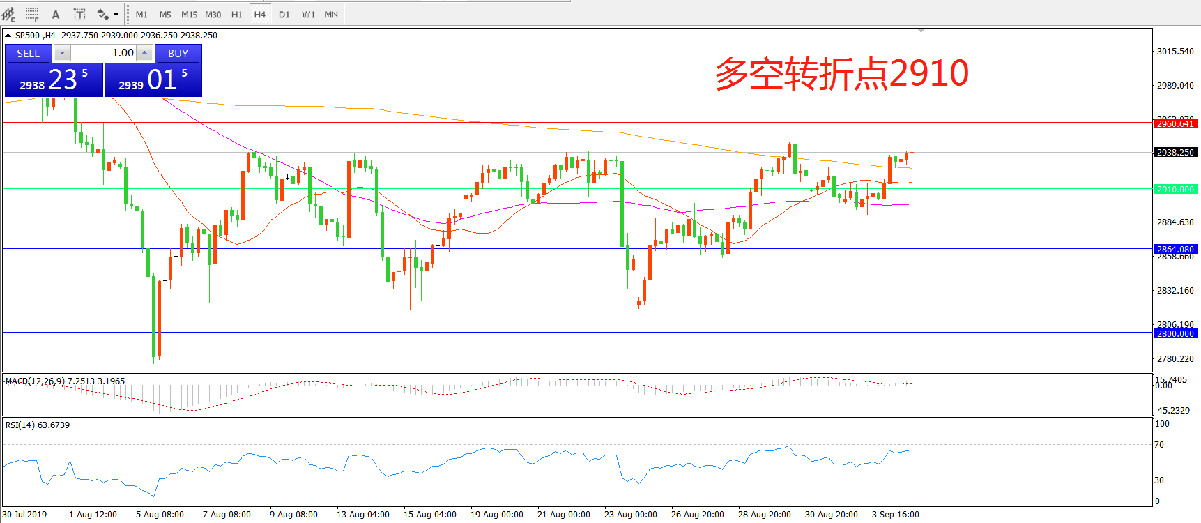 多空转折点:2910.00