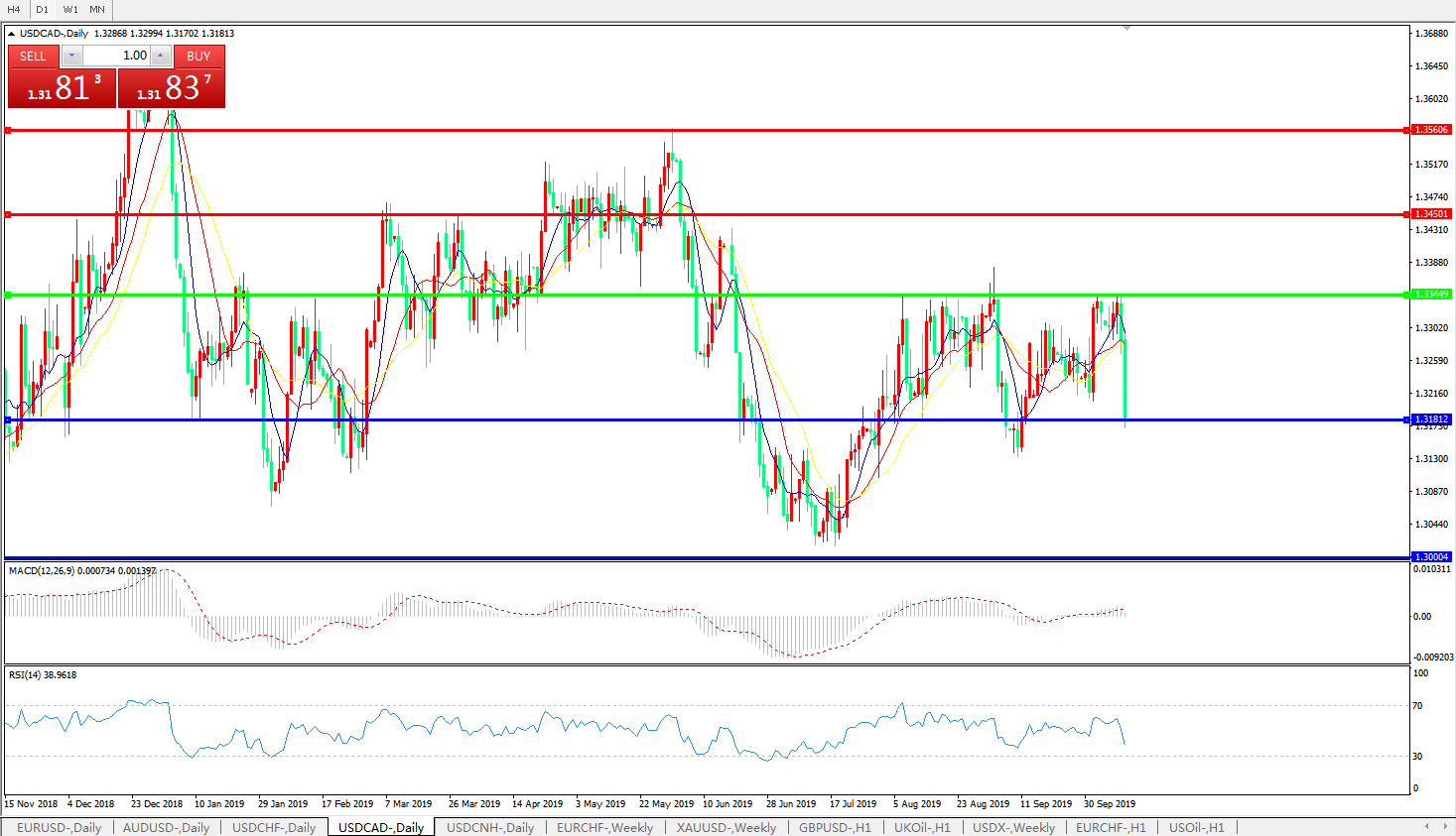 美元兑加元USDCAD    日线