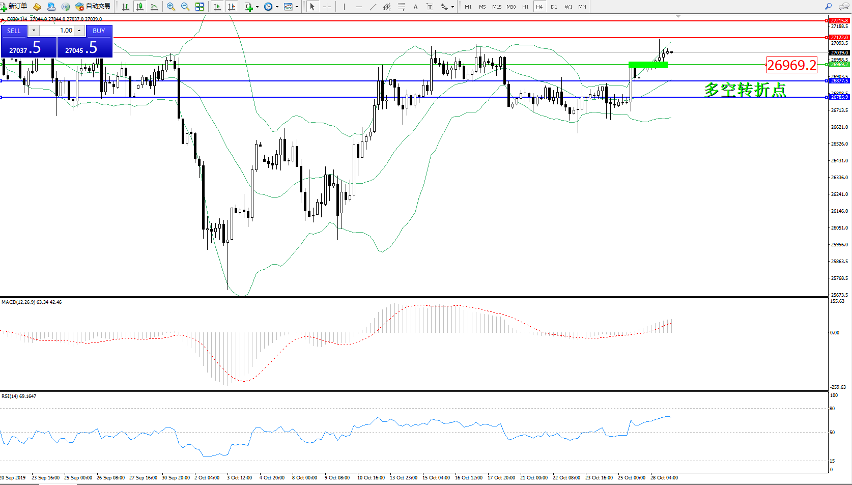 道琼斯指数1028日(周一)收盘上涨132.70点,涨幅0.49%,报27090.72点。受贸易乐观消息提振,且投资者预期美联储将于本周晚些时候宣布降息。科技巨头微软攀升2.46%,为三大股指中涨幅最大的个股之一。在财报季结束及美联储会议结束后,人们将关注贸易消息,第三季度财报季部分缓解了对贸易紧张局势给企业盈利带来影响的担忧,迄今有204家标普500指数成份股企业发布了业绩,其中逾78%的获利好于预期。