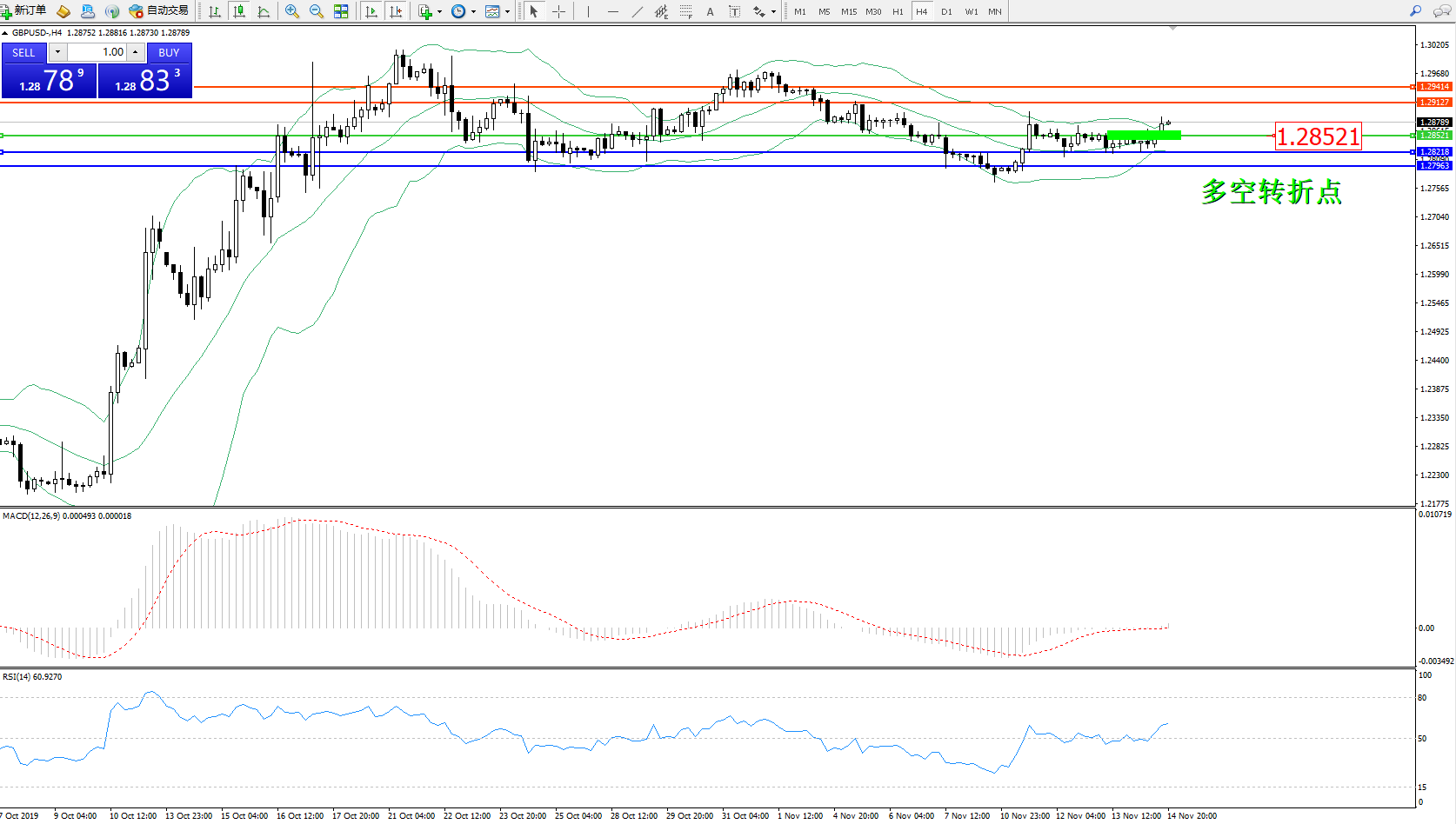 交易策略:1.28521上方看涨,目标1.29127、1.29414