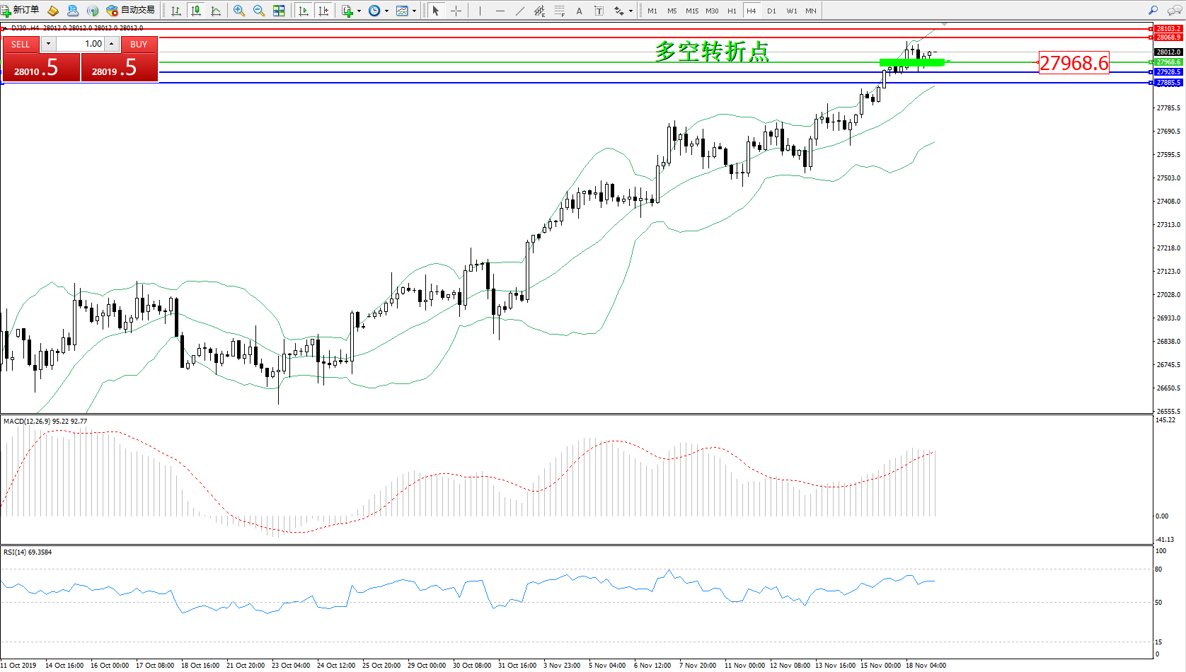 道琼斯指数11月18日(周一)收盘上涨31.20点,涨幅0.11%,报28036.09点。美国众议院民主党人周一公布了与共和党协商的权宜支出法案文本,该法案旨在避免联邦政府本周五陷入停摆。这一为期四周的支出法案将令联邦政府停摆最后限延长到12月20日,这将使美国进出口银行在该期限之前维持运营,允许普查局维持支出在较高的水平来为明年的人口普查做准备,防止明年自动削减公路拨款,并为军方提供3.1%的加薪;众议院计划最快周二就该法案进行投票。参议院多数党领袖麦康奈尔表示,共和党控制的参议院也将在本周对该法案进行投票,美国政府当前资金将在周四结束时用尽,白宫已经暗示总统特朗普准备签署该法案。