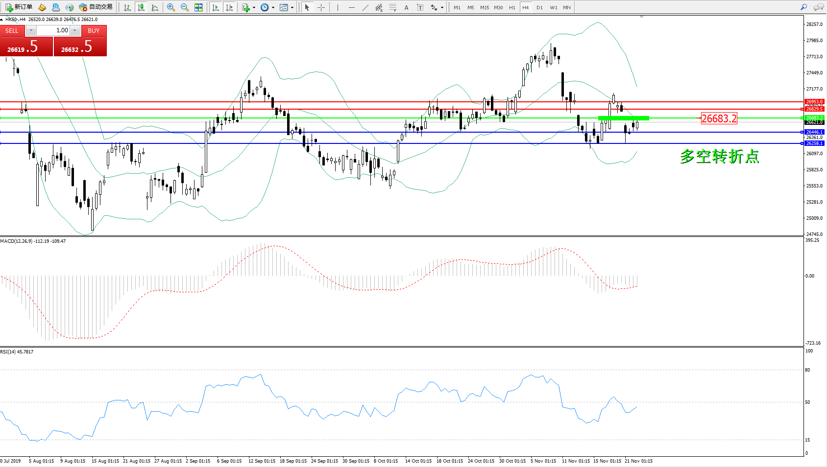 香港恒生指数1122日(周五)收盘上涨128.20点,涨幅0.48%,报26595.08点;港股高开118点后,再续有买盘支持,并逐步向上,恒指高见26690,高位见压力,再收窄升幅至收市。中方邀请美国官员前往北京再续谈判。经贸前景不确定性增强,市场也是开启观望模式,进入初步防御状态,预计恒指仍会继续调整。