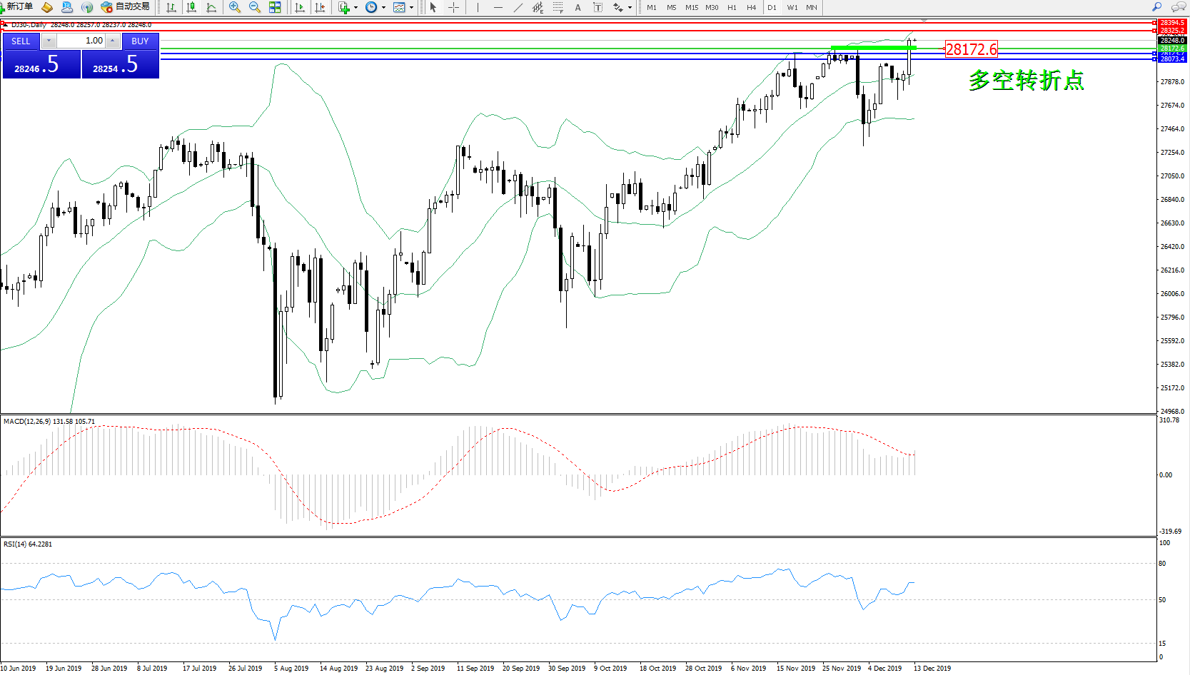 道琼斯指数1212日(周四)收盘上涨220.80点,涨幅0.79%,报28132.12点。美国总统特朗普发表的关税方面言论,提振了市场乐观情绪,资金流入股市。美股三大指数盘初刷新历史新高,美元表现优于大多数G-10货币。10年期美国国债收益率一度攀升13个基点至1.92%,原因是贸易局势的发展刺激风险偏好增强。