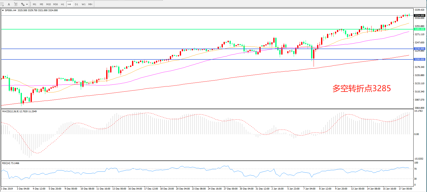 上周,美股财报季开局稳健,加之全球经济数据向好,标普500震荡上行,创下历史新高,收报3325.25点。本周将是小交易周,美股因马丁•路德•金日休市一天,市场焦点将从此前的中美贸易协议转向达沃斯论坛,而财报季将迎来科技、金融、消费和工业等大型公司的业绩披露高峰。
