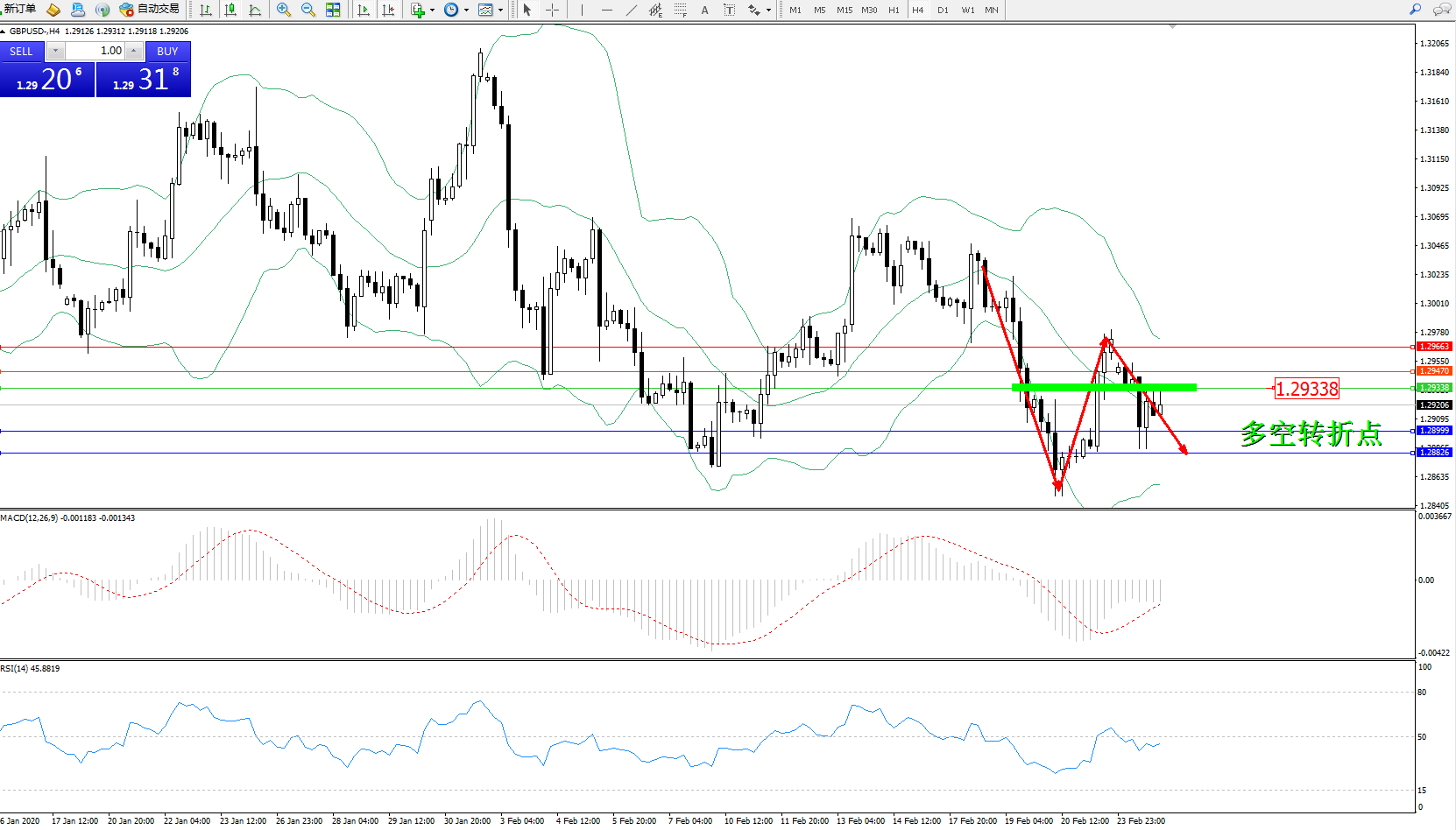 交易策略:1.29338下方看跌,目标1.28999、1.28826