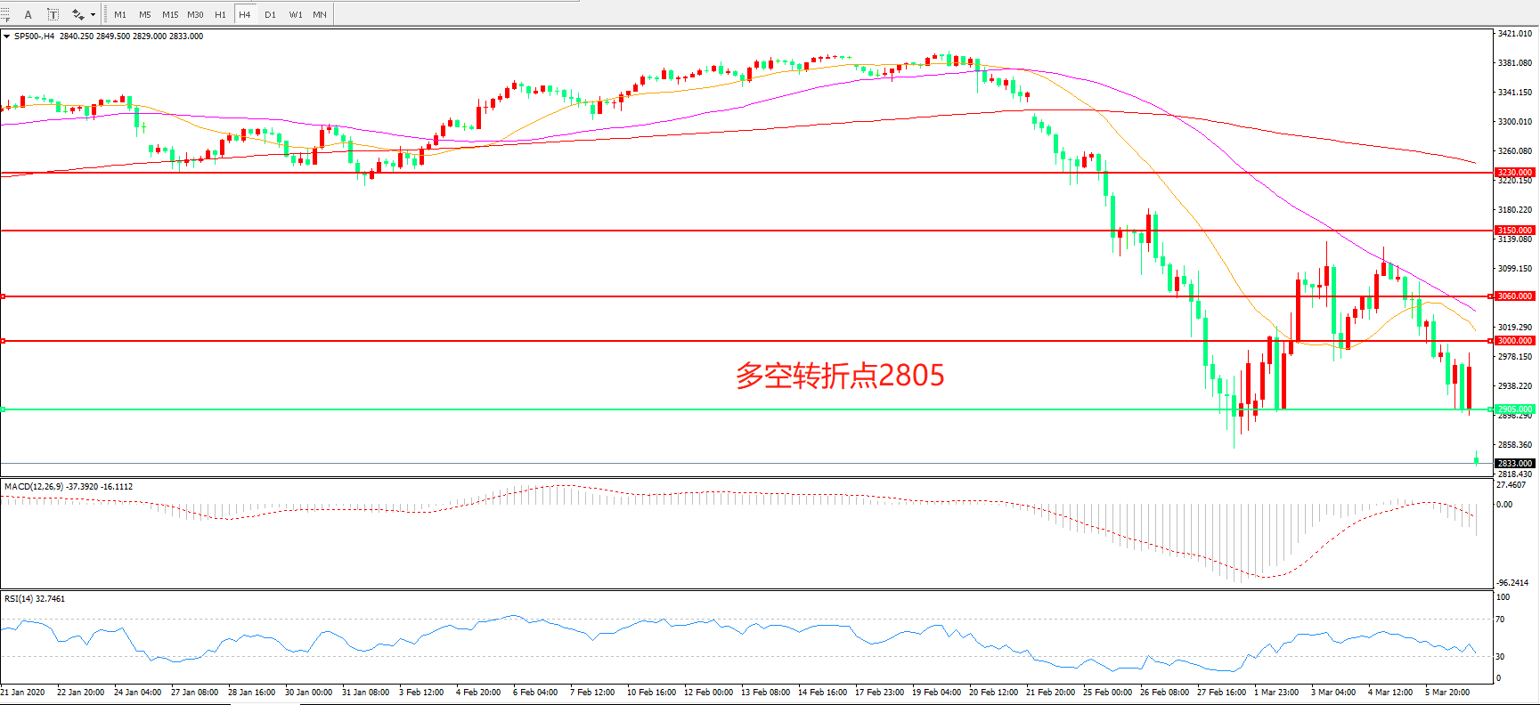 标普500 SP500 4小时图