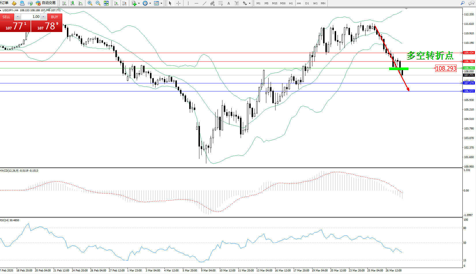技术点评:空头动力高位持续震荡延续布林带指标下轨不断下移中,布林带指标呈张口走势中,下行趋势再次打开,MACD指标空头区域持续震荡下行跌破0轴线后不断下探中,RSI指标处于空头区域弱势震荡向下移动中;