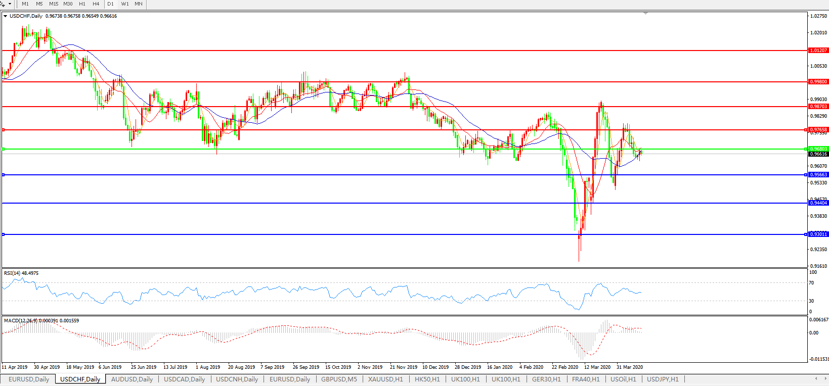 交易策略:0.9680下方看跌,目标0.9565、0.9440