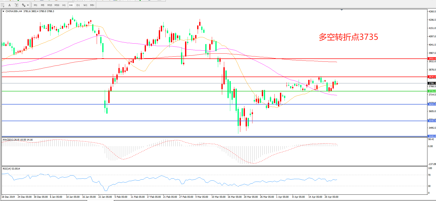 沪深300  CHINA 300   4小时图