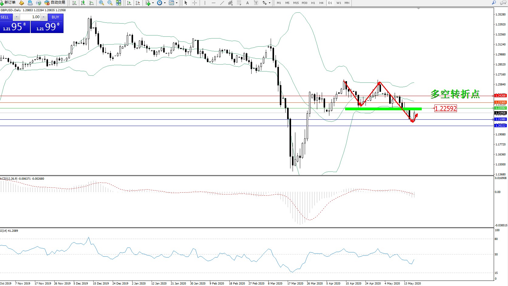 交易策略:1.22592下方看跌,目标1.210801.20222