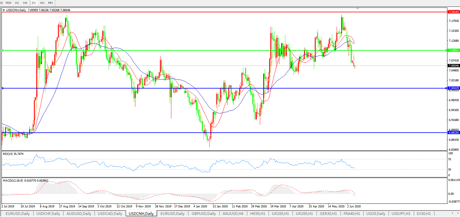 美元兑人民币USDCNH 日线图: