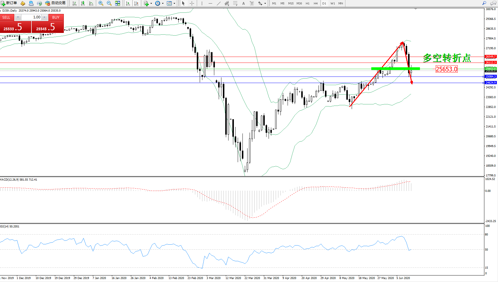 技术点评:多头动力持续震荡上扬后,高位遇阻出现快速回撤下移走势,跌破布林带指标中轨附近节点后开始维持弱势震荡,布林带指标呈收口走势中,高位有继续下行态势,MACD指标处于0轴线上方多头区域持续震荡平缓下移中,RSI指标处于多头区域急速下挫至50均衡线附近弱势徘徊中;