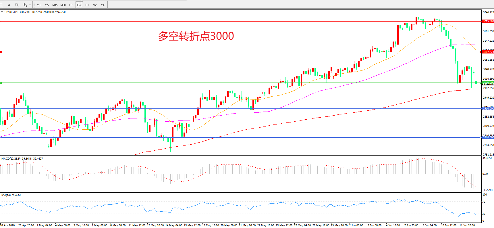交易策略:在3000.00之下看跌,目标2910.00          2810.00