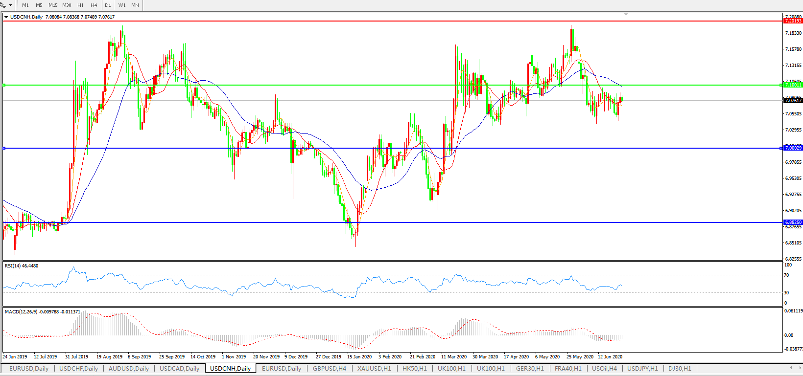 美元兑人民币USDCNH 日线图:
