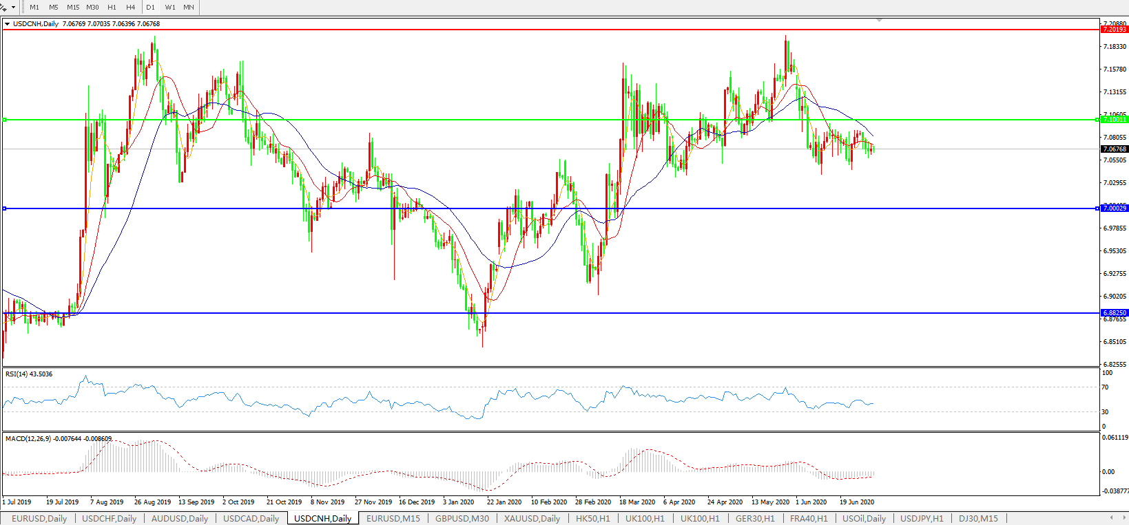 美元兑人民币USDCNH 日线图: