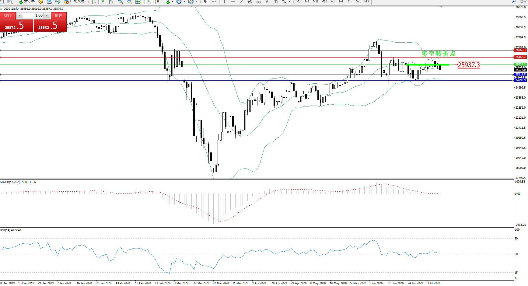 道琼斯指数7月9日(周四)收盘下跌361.20点,跌幅1.39%,报25706.09点。美股三大指数收盘涨跌不一,资者担忧新冠病毒疫情复燃将破坏美国经济复苏。道琼斯工业平均指数下跌逾1.3%,受波音拖累;而大型科技股推动纳斯达克综合指数继续上涨。金融股在标普500指数行业中跌幅居前,富国银行准备从今年晚些时候开始裁员数千人。美国单日新增新冠病例首次超过6万,加州和佛罗里达州新增死亡病例创纪录;虽然一些乐观派押注财政和货币刺激政策将有助抵御疫情冲击,但也有人指出就业市场仍处险境。市场情绪明显转为负面,疫情担忧升温看来是最大的问题,鉴于亚洲的新冠病例数也在上升,市场“确实担心第二波疫情正在逼近,这将影响全球经济。