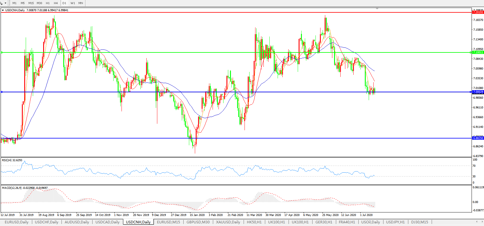 美元兑人民币USDCNH 日线图: