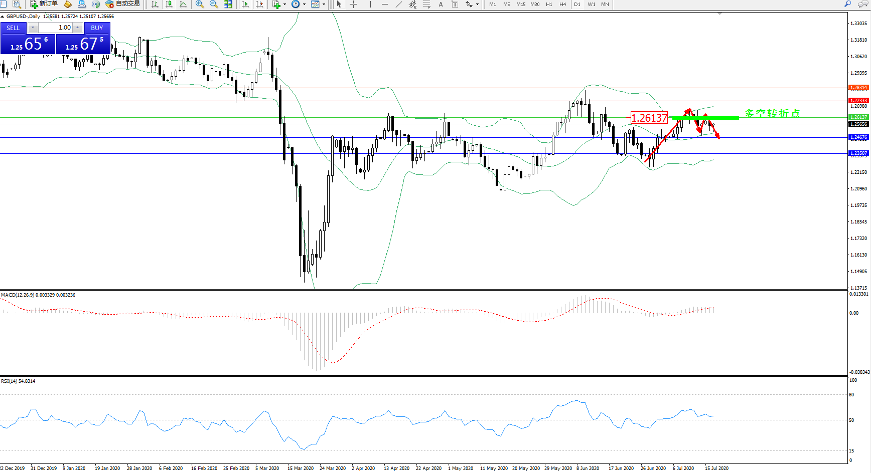 备选策略:1.26137上方看涨,目标1.27333、1.28314