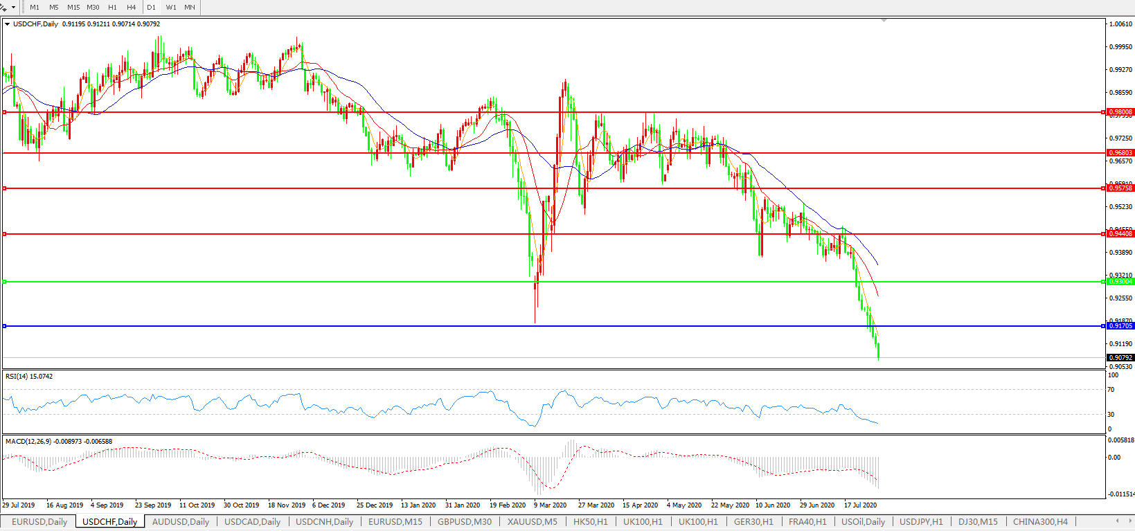 美元指数尾盘下跌0.35%,报92.94,本月势将下跌4.5%左右,这将是2010年9月以来最糟糕的月度表现。由于冠状病毒在美国各州的持续传播给经济带来重压,美元已经历了一个月的大跌,并有可能录得10年来最糟糕的月度表现。特朗普推迟大选的言论扭转了美元早些时候的反弹走势。Western Union Business Solutions资深市场分析师Joe Manimbo表示,美国任何形式的不确定性,无论是经济还是政治,都是卖出美元的借口。数据显示,美国经济在第二季度萎缩了32.9%,这是自大萧条以来的最大降幅。美国劳工部在另一份报告中称,7月25日止当周初请失业金人数经季节调整后增加1.2万人至143.4万人。Manimbo表示:“初请失业金人数数据告诉我们,复苏已经开始变得乏力。”Brown Brothers Harriman的Win Thin表示,疲软的数据提供了另一个抛售美元的借口。值得注意的是,在近期的几波避险市况中,美元都表现不佳;美国经济刺激方案的前景日益恶化,加剧了人们的忧虑。每周多出的600美元失业金将在明天到期,而且看不到任何延长的前景。这个巨大的经济刺激将会消失。