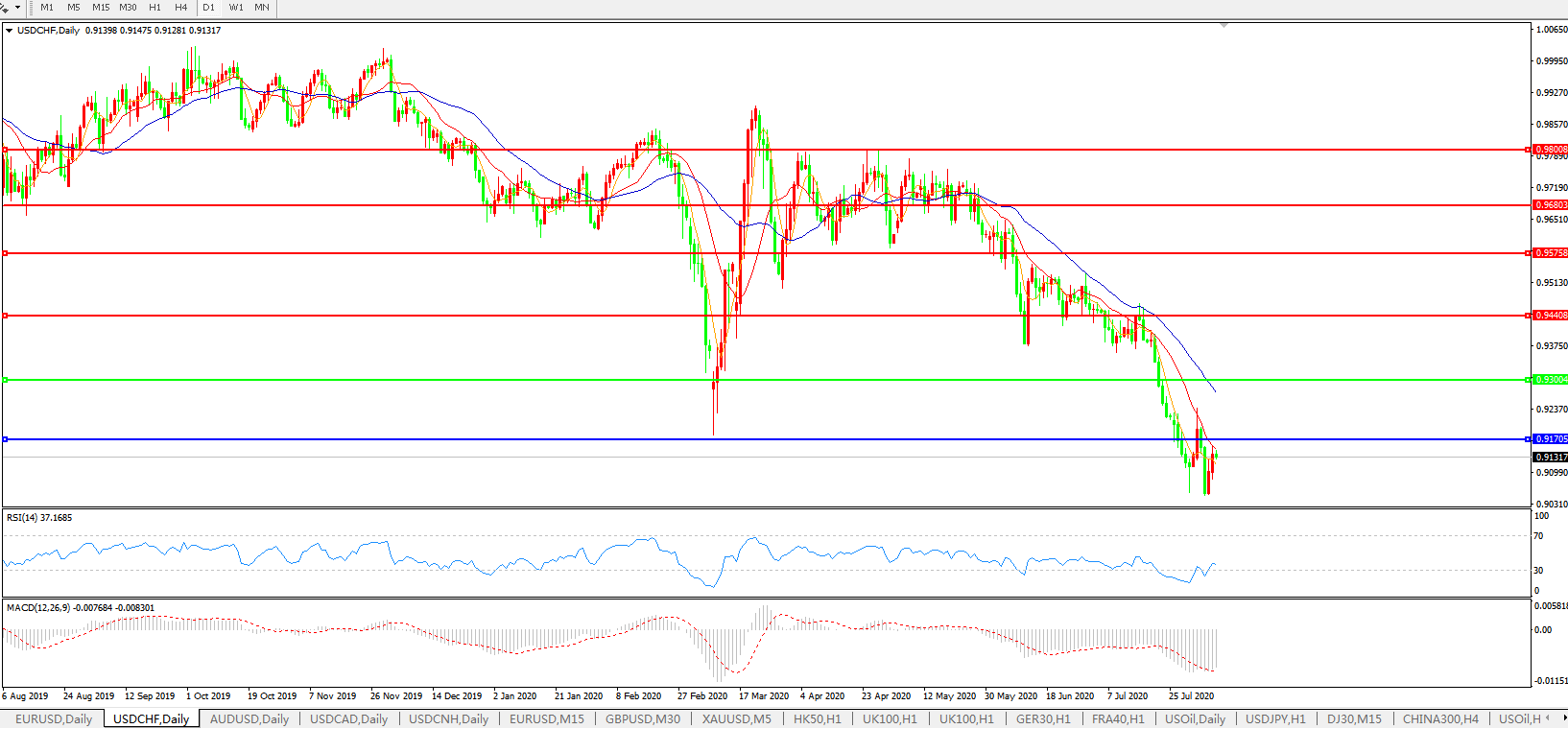 交易策略:0.9300下方看跌,目标0.9170、0.9000