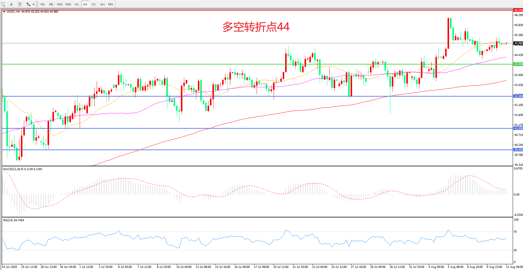 交易策略: 在44.00之上看涨,目标46.50 49.00