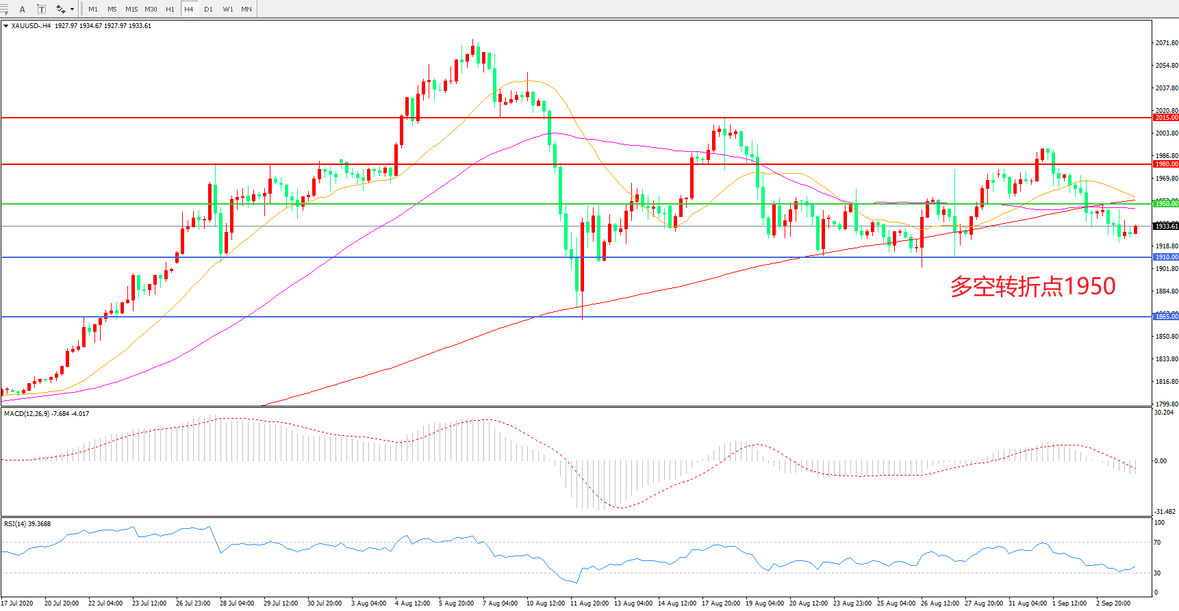 周四(9月3日),美指连续第三个交易日上涨,持续脱离逾两年低点,美元的回暖走势打压着避险情绪,现货黄金延续低位震荡,收报1932.54美元/盎司。由于近期美元已经成为金融市场的主要风向标,因此务必要重点关注今日公布的非农就业数据,来判断美元的下一步行情动向。