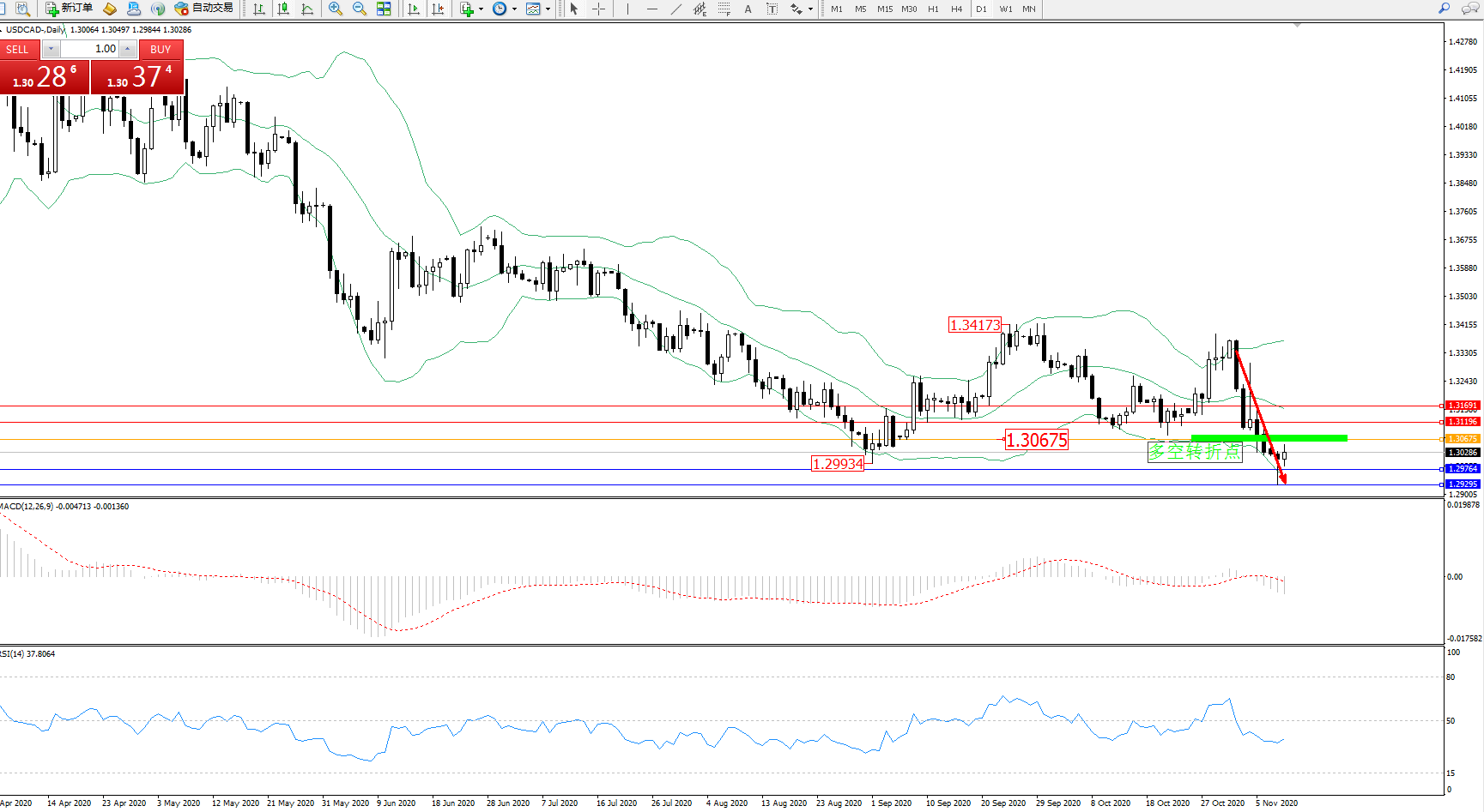 交易策略:1.30675下方看跌,目标1.29764、1.29295