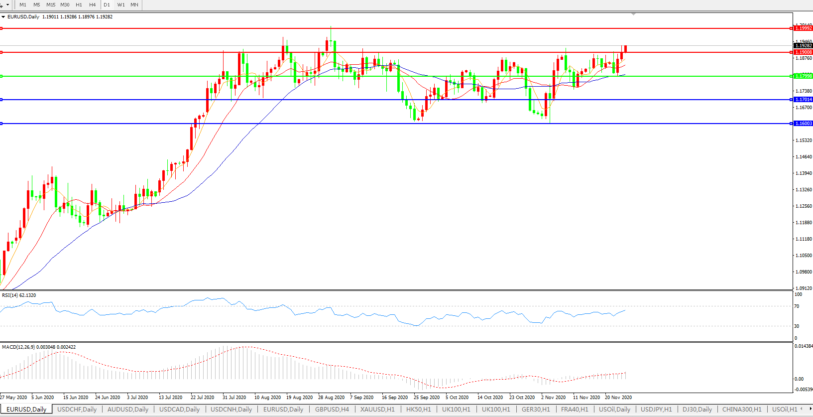 交易策略:1.1800上方看涨,目标1.1900、1.2000