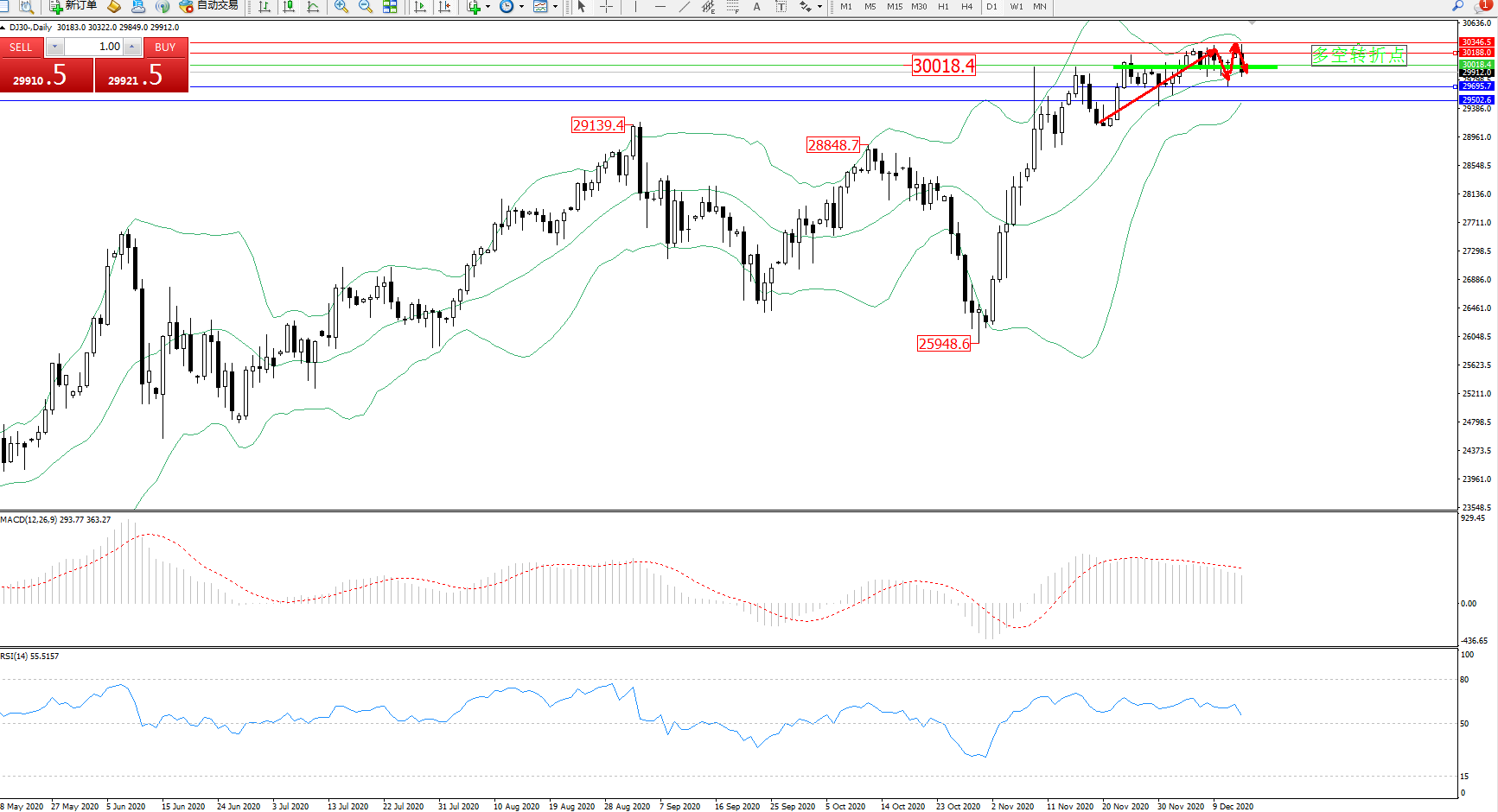道琼斯指数DJ30—— 日K线图显示:
