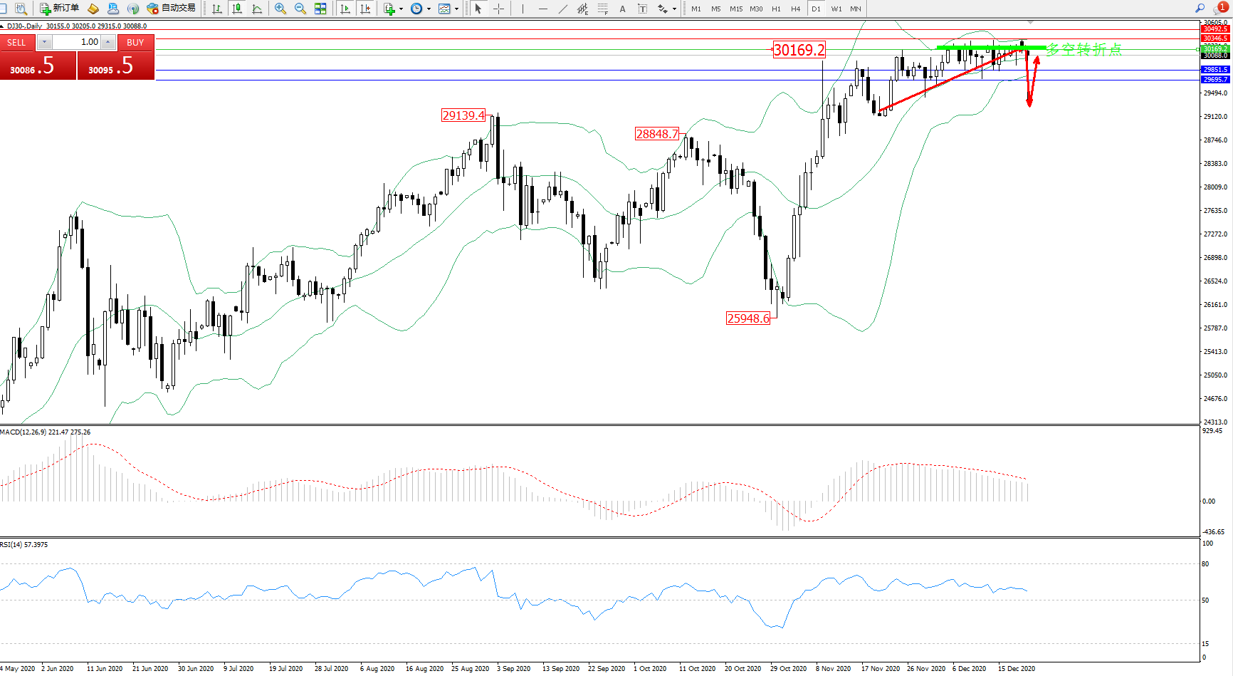 道琼斯指数DJ30—— 日K线图显示: