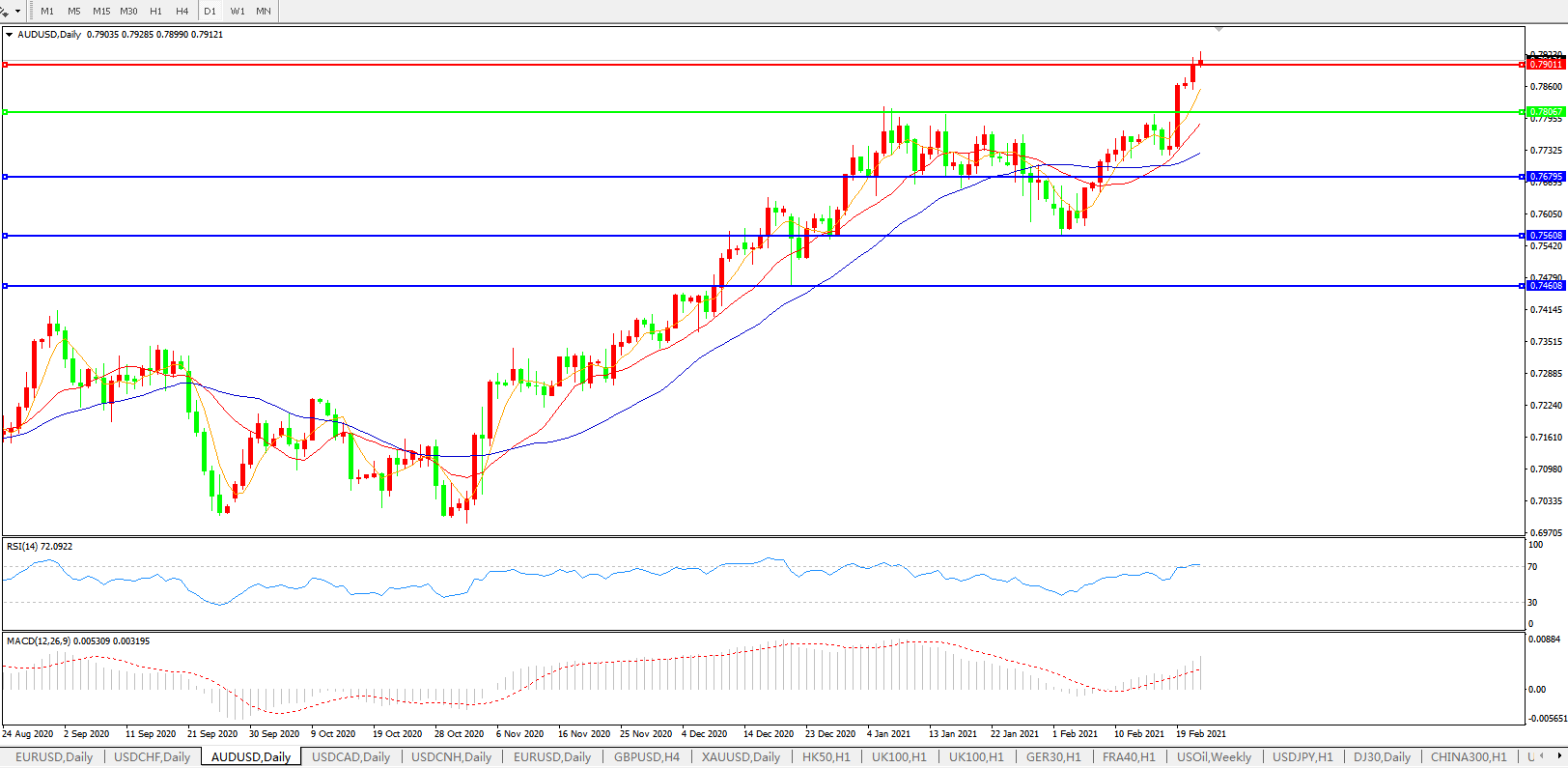 大宗商品价格节节攀升,澳元兑美元持续上攻