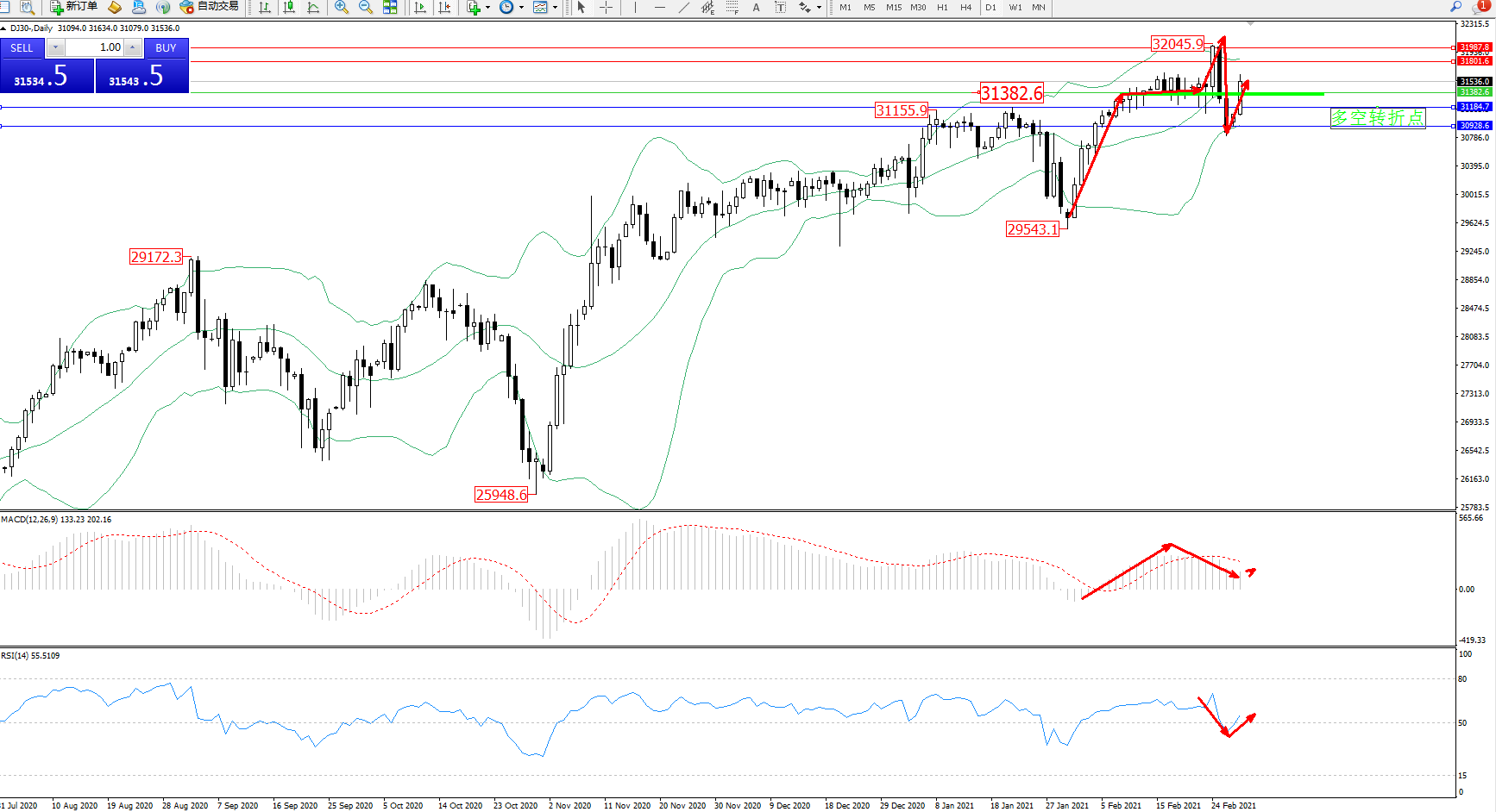 道琼斯指数3月1日(周一)收盘上涨603.21点,涨幅1.95%,报31535.58点;上周六美国众议院批准了拜登总统1.9万亿美元的新冠疫情救助法案,并将其提交参议院审议。指标10年期美国公债收益率从一年高点回落,而对经济刺激计划的乐观情绪和有关新冠疫苗接种的好消息,鉴于其与美国10年期国债收益率的相关性,这可能对固定收益市场构成挑战;ISM报告显示材料成本创下2008年金融危机以来最大涨幅,这种上涨正开始向消费端传导。企业已经在艰难应对疫情带来的供应链中断和运输包装成本上涨局面,越发无力消化投入成本的激增。食品价格上涨对通胀的影响可能会开始引起央行担忧。目前,央行对潜在的通胀驱动因素还有些不以为意;这不仅仅是美联储面对的问题,而是一个全球性问题。未被美联储和其他很多央行密切跟踪的食品和能源成本正在上涨,全球央行都应该开始关注这两项,以免为时太晚。