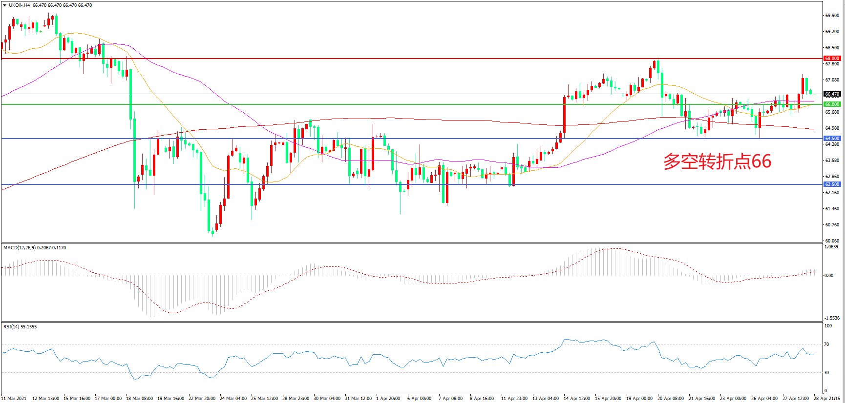 周三(4月28日),美国当周EIA原油库存增加9万桶,好于市场预期,汽油、精炼油库存好坏参半,布伦特原油大幅上行,收报66.47美元/桶。根据OPEC+预测,在去年需求骤降950万桶/日之后,2021年全球石油需求将增长600万桶/日,随着美国和中国经济强劲反弹,市场对需求前景仍然充满信心,