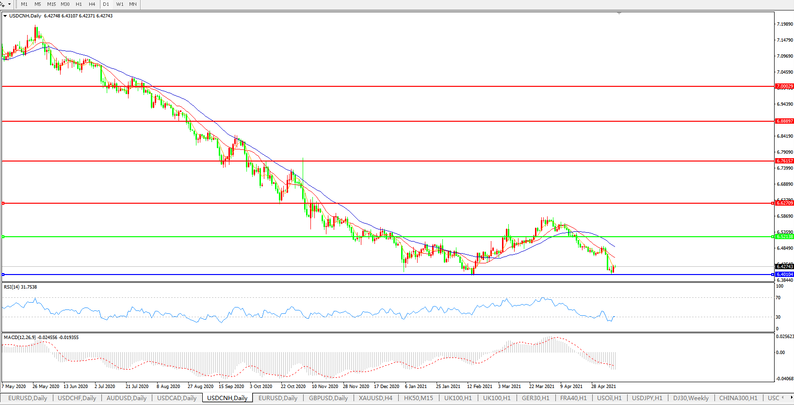 美元兑人民币USDCNH    日线图: