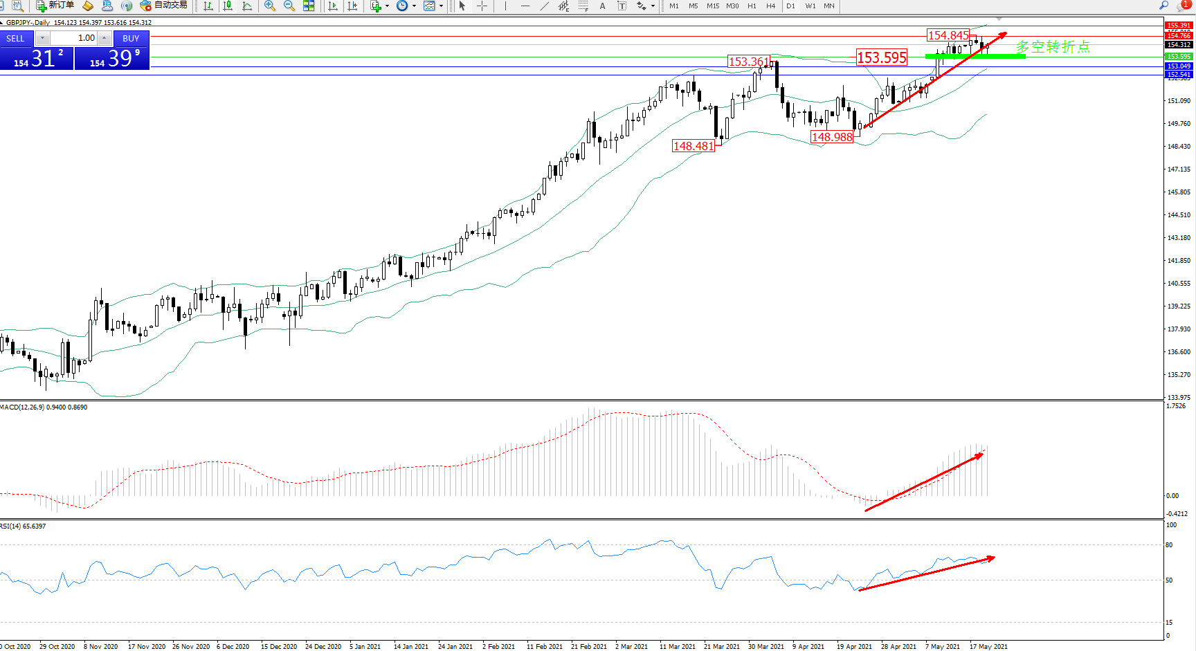 英镑兑日圆处于154.312附近震荡,在疫苗接种计划取得成功的支持下,英国GDP今年将增长6.2%,明年将增长5.3%,预计英国央行将在第三季度进一步削减每周的量化宽松购买,预计将在美元指数疲软的框架内逐步上升;继一季度GDP季率下降1.5%后,更新了英国的复苏前景以更好地反映重开的时间,就绝对值而言,对2022年底GDP的估计没有任何实质性改变,然而重要的细微差别在于,英国现在可以更快地缩小产出缺口,预计到2022年年中,GDP将恢复到疫情前水平,今年和明年的增长率分别为6.2%和5.3%。