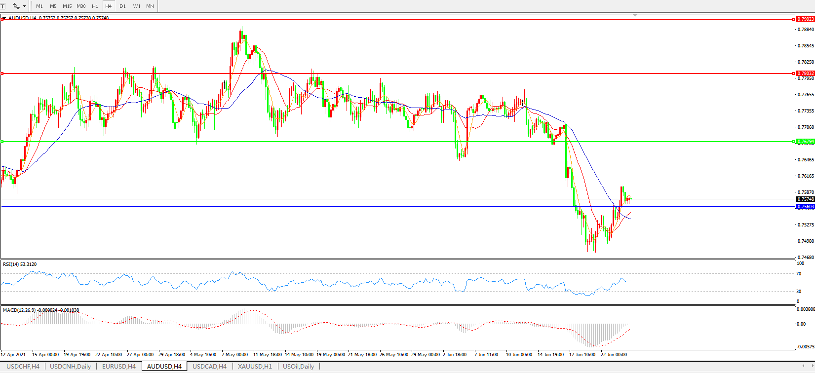 交易策略:0.7680下方看跌,目标0.7560、0.7400