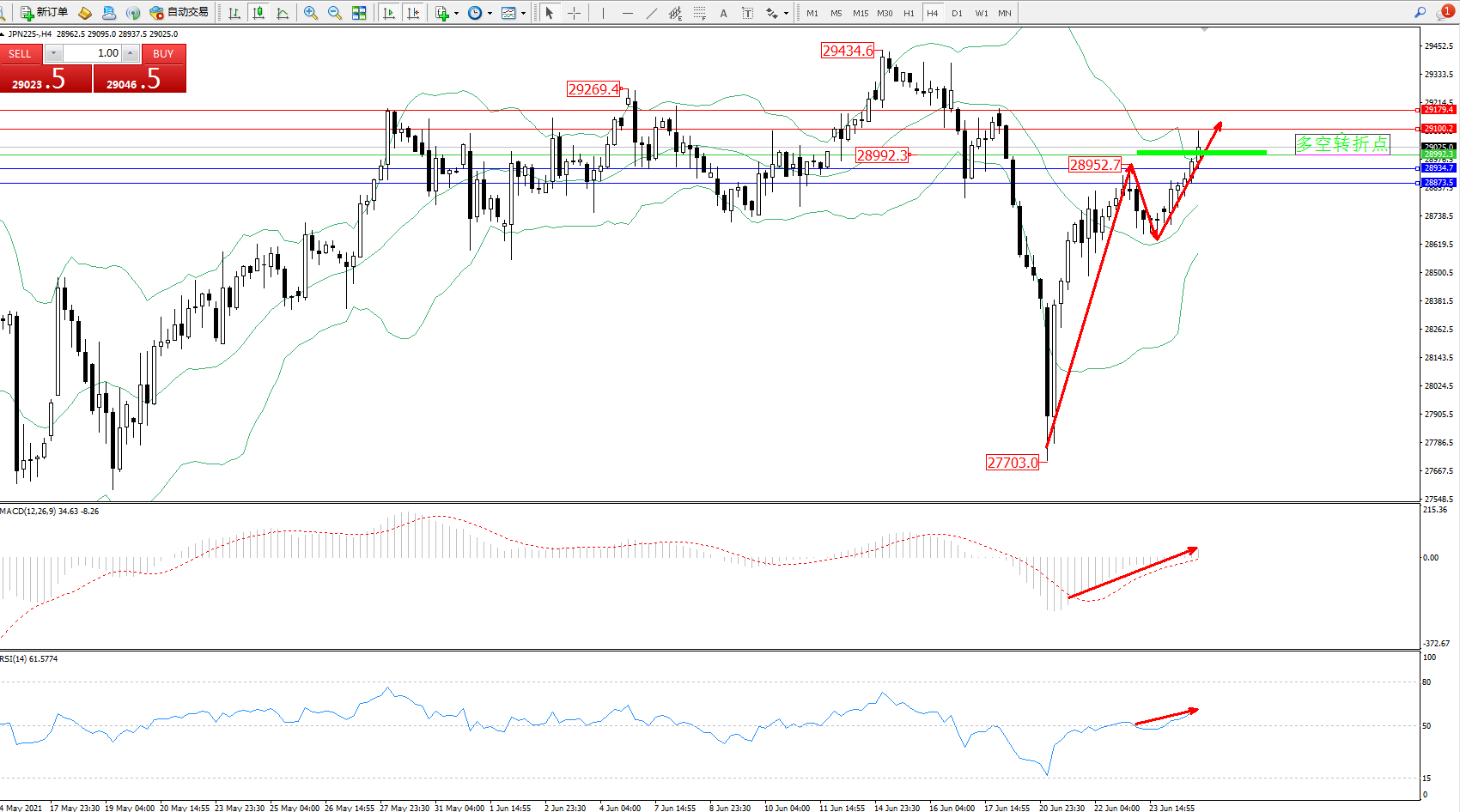 技术点评:低位多头动力强势反转拉升上扬,高位抵达28952位置后短期震荡后,再度强势拉升,突破布林带指标上轨附近节点后有继续向上移动态势,多头动力纠结于布林带指标上轨附近节点附近开始整理,布林带指标呈收口走势后有向上拉升迹象,MACD指标多头动力缓慢上移至0轴线附近弱势徘徊中,RSI指标处于50均衡线附近持续整理后开始不断上移中;